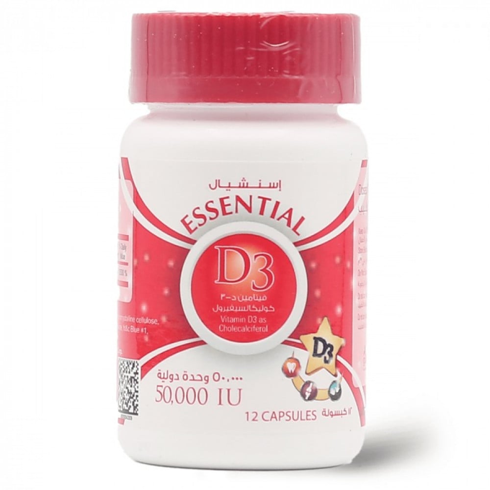 - اسنشيال د 3-50,000 وحدة دولية، مكمل فيتامين د، للحفاظ على صحة العظام - 12 كبسولة