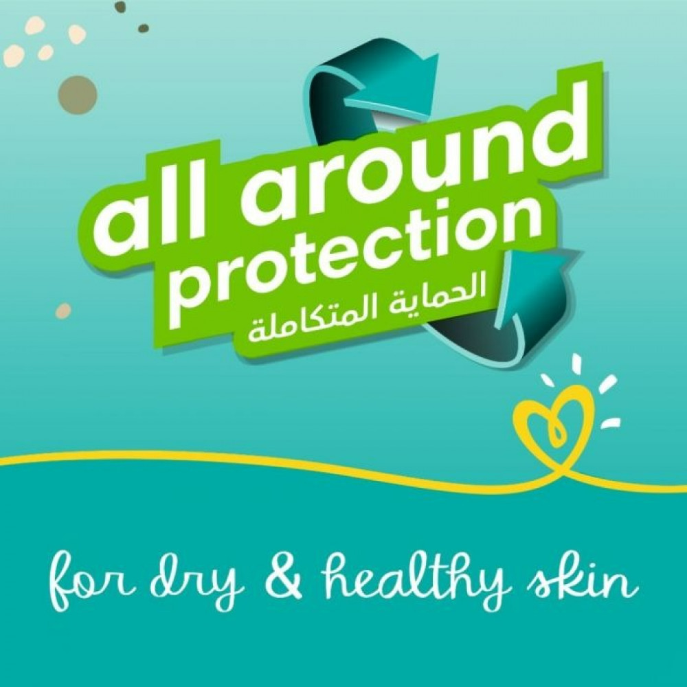- حماية شاملة من الرطوبة لبشرة جافة وصحية: ثلاث قنوات امتصاص توزع البلل بالتساوي وتحبسه بشكل أفضل، باستخدام الحفاض الكامل من الأمام إلى الخلف لحماية تصل إلى 100٪ من التسرب و 13 ساعة من الجفاف.