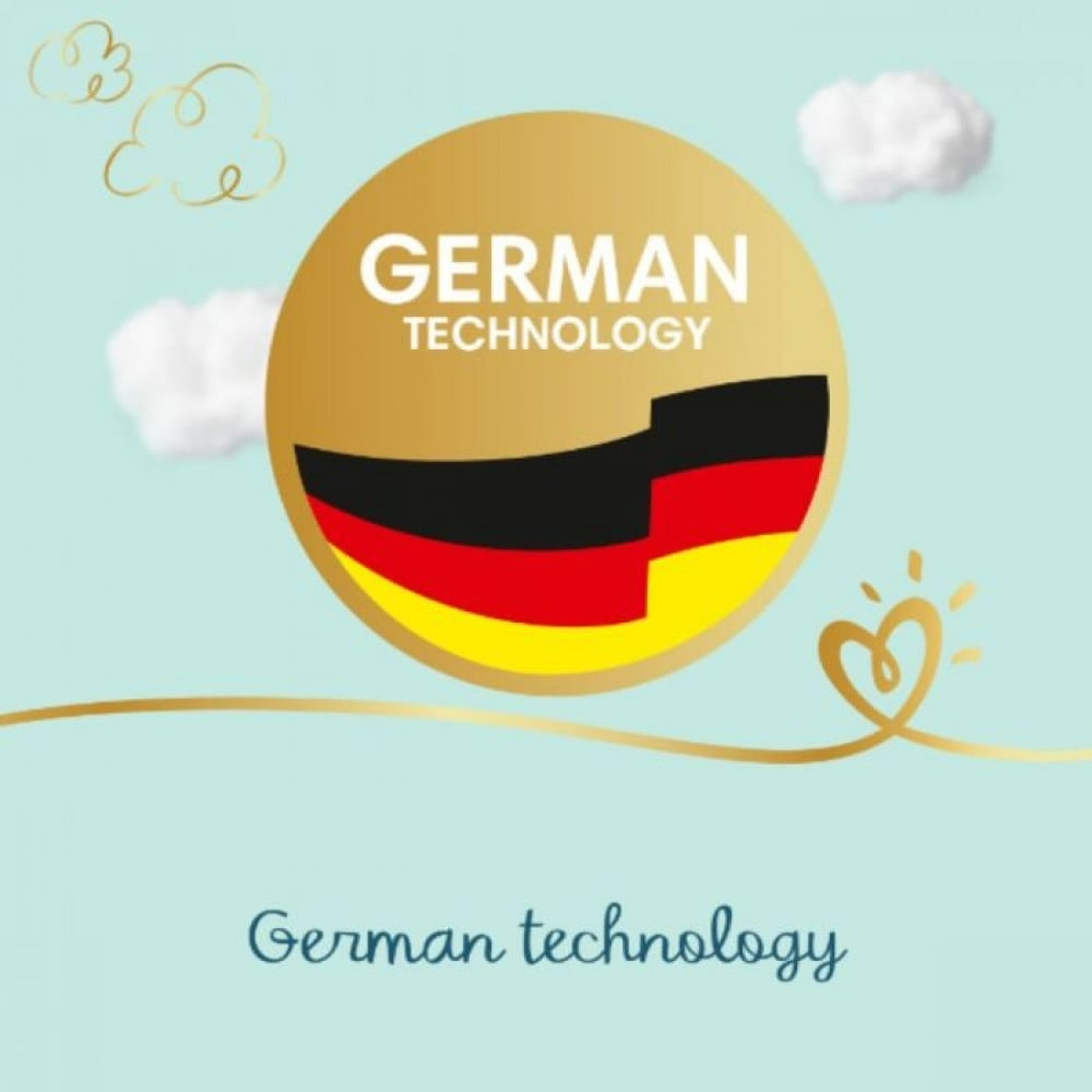 - تكنولوجيا ألمانية: مصممّة ومعزّزة بتكنولوجيا ألمانية لضمان جودة أعلى، فهي تضمن لك ألا تقلقي من أي تسرّب عندما يتعلق الأمر بتحركات طفلك.