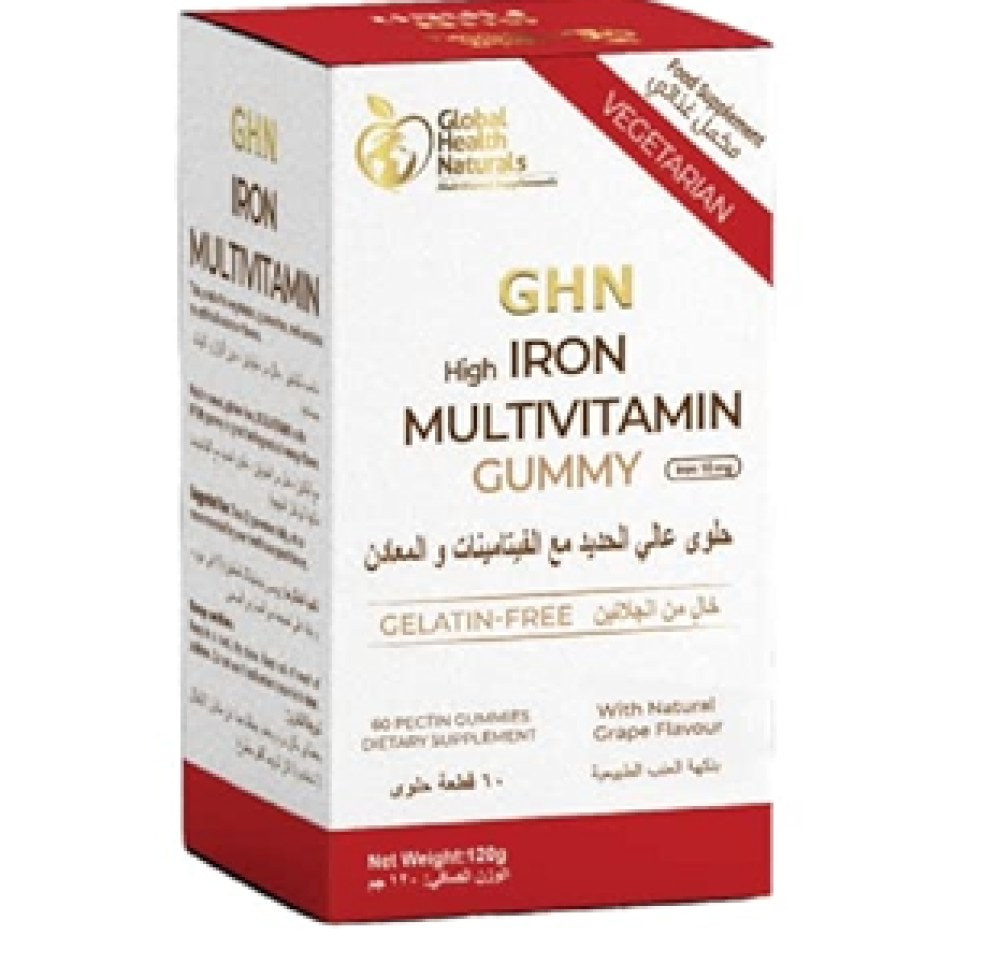 جي اتش ان حلوى متعددة الفيتامينات عالية الحديد 10 ملجم - 60 قطعة - متعددة الالوان