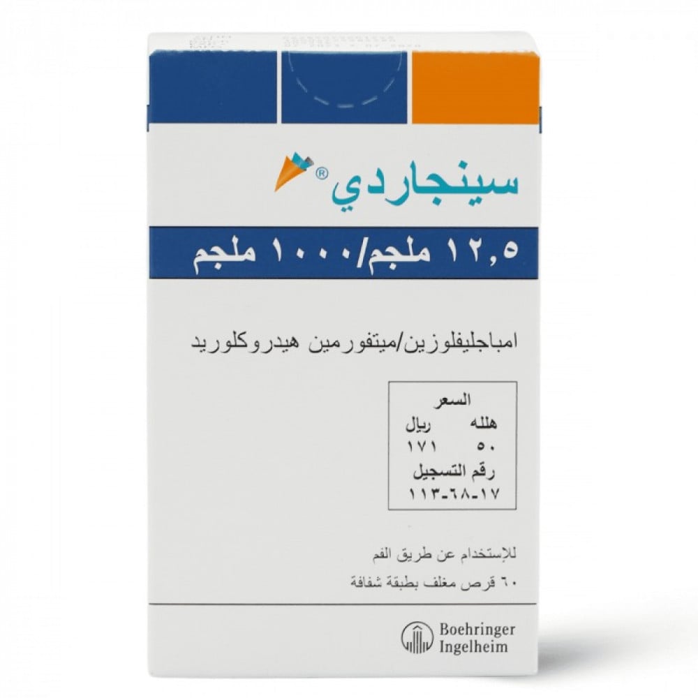 - سينجاردي 1000/12.5، يقلل مستوى السكر في الدم ويحمي من مضاعفات السكري - 60 قرص
