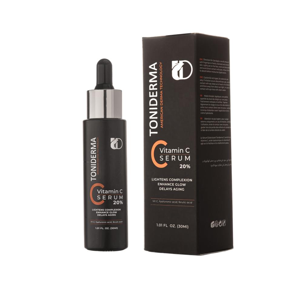 تونيديرما سيروم فيتامين سي هو منتج متقدم بتركيبة فريدة تحتوي على 20٪ فيتامين سي، يساعد البشرة في إصلاح الأضرار الناتجة عن التعرض للعوامل البيئية وتقدم العمر. هذا السيروم لا يقتصر فقط على التخلص من التجاعيد والخطوط التعبيرية، بل يضمن أيضًا الحفاظ على ترطيب البشرة وحمايتها من التصبغات، مما يوفر لك مظهرًا موحدًا وصحيًا.