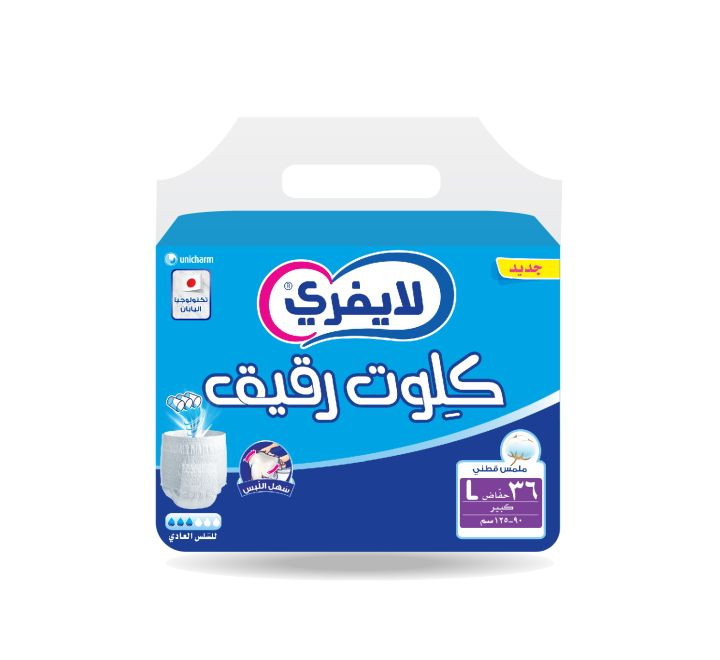 حفاض لايفري كيلوت رقيق بتقنية يابانية عالية الامتصاص للحماية من التسرب. يمتص حتى 3 كاسات مما يسمح للأشخاص الذين يعانون من سلس البول العادي بالعيش والتمتع بحياة طبيعية.